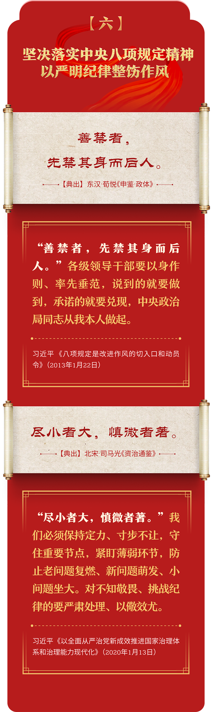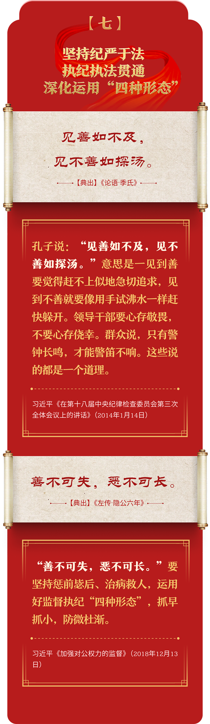 編者按:加強紀(jì)律建設(shè)是全面從嚴(yán)治黨的治本之策。黨的十八大以來,習(xí)近平總書記圍繞全面加強黨的紀(jì)律建設(shè)發(fā)表一系列重要論述,立意高遠,內(nèi)涵豐富,思想深刻,引導(dǎo)黨員干部學(xué)紀(jì)、知紀(jì)、明紀(jì)、守紀(jì),真正把紀(jì)律規(guī)矩轉(zhuǎn)化為政治自覺、思想自覺、行動自覺,確保全黨目標(biāo)一致、團結(jié)一致、步調(diào)一致。在這些重要論述中,總書記精妙運用古代典籍經(jīng)典名句,以古喻今、啟迪思想、激蕩精神,讓我們一起來學(xué)習(xí)!