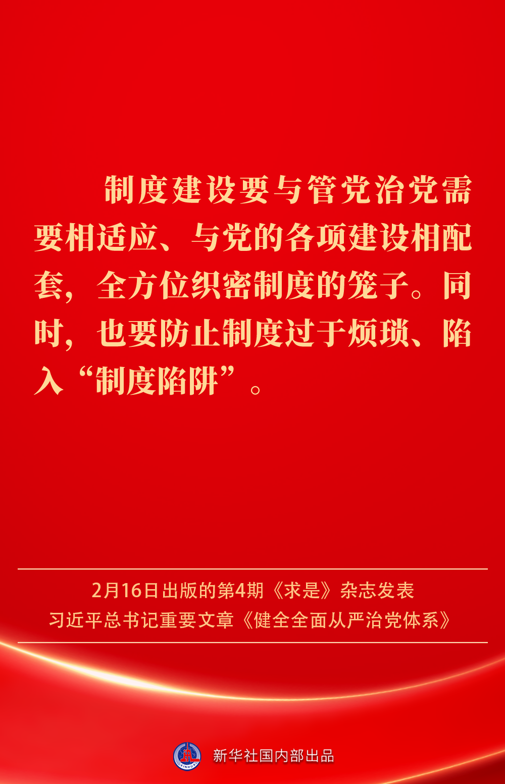 2月16日出版的第4期《求是》雜志發(fā)表習(xí)近平總書記重要文章《健全全面從嚴(yán)治黨體系》。如何進(jìn)一步健全要素齊全、功能完備、科學(xué)規(guī)范、運(yùn)行高效的全面從嚴(yán)治黨體系?習(xí)近平總書記闡明要旨——
