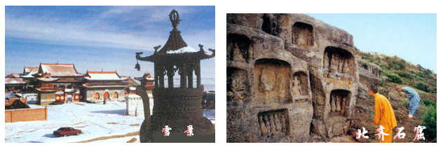 石佛嶺:在白馬寺山后約1公里多的山崖上,有一處摩巖造像群,古稱石佛嶺。據史料記載,原有造像500余尊。傳說一和尚,為了搞清佛像的數量,數了十多遍,每次都不一樣,不得已,他用了三天的時間將每尊像都貼上編號,才總算得以數清。由于各種原因,石佛嶺造像破壞較大,現僅存30余龕,90余尊,以北齊造像為多,有少量的唐寧元造像,還有幾尊似為明、清遺物,十分珍貴。