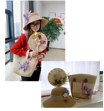 伴隨著悠揚的輕音樂旋律,大家聚精會神地聆聽老師的講解,同時巧手匠心,將所學技巧融入實踐,在“帽美如花”、“包你幸福”、“晉扇晉美”三個環節,親手裝飾出專屬自己的夏日限定飾品。通過草編與花藝的巧妙結合,這些作品在形態、色彩與質地上展現出豐富多變的優雅風姿。在芬芳馥郁的花香環繞中,大家不僅感受到了大自然的韻味,更領悟到了生活的藝術與真諦。作品完成后,大家興奮地相互展示,彼此欣賞,紛紛舉起自己的得意之作合影留念,定格下了這一美好而難忘的瞬間。
