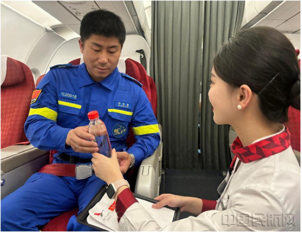 “在危難時刻你們無畏逆行,用專業與擔當守護生命,用汗水與信念點亮希望”當航班進入平飛階段,乘務組通過機上廣播向藍天救援隊員們表達崇高敬意,廣播未畢,客艙內就已響起熱烈掌聲,旅客們紛紛為這群“逆行英雄”點贊鼓掌。