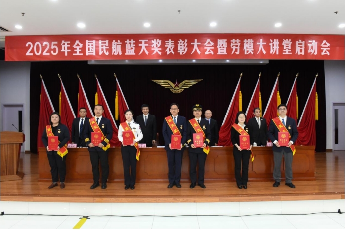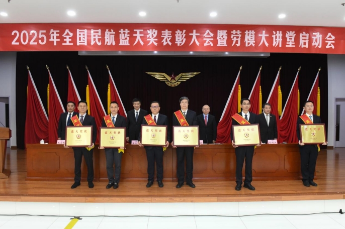經(jīng)黨和國(guó)家功勛榮譽(yù)表彰工作委員會(huì)辦公室同意,2025年“五一”前夕,民航局開(kāi)展藍(lán)天獎(jiǎng)狀、藍(lán)天獎(jiǎng)?wù)略u(píng)選表彰。會(huì)議宣讀了民航局表彰決定并進(jìn)行頒獎(jiǎng),授予國(guó)航西南分公司等27個(gè)單位、國(guó)航飛行總隊(duì)第四飛行大隊(duì)一中隊(duì)晨風(fēng)班組等48個(gè)班組藍(lán)天獎(jiǎng)狀榮譽(yù)稱(chēng)號(hào),張鳳麟等75名同志藍(lán)天獎(jiǎng)?wù)聵s譽(yù)稱(chēng)號(hào)。藍(lán)天獎(jiǎng)?wù)芦@得者、國(guó)航飛行總隊(duì)三大隊(duì)一中隊(duì)中隊(duì)長(zhǎng)王雨寒宣讀了倡議書(shū)。