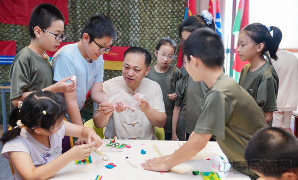 在剛健的軍事訓練之外,傳統文化的滋養為暑托班增添了溫潤的底色。皮影戲的光影流轉間,孩子們驚嘆于非遺技藝的奇妙;博物館專家走進東航,用生動的講解揭開歷史文物的面紗,讓千年文化在孩子們眼中鮮活起來;集體繪畫長卷上,他們以童真筆觸勾勒出心中的祖國與東航;手工制作課上,面塑等傳統技藝的體驗,讓孩子們在動手間感受先輩智慧。從傳統藝術到歷史底蘊,多元課程讓民族自豪感在孩子們心中油然而生。