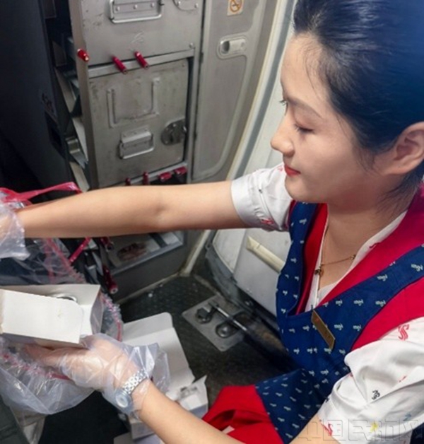 乘務員張涵立刻安撫道:“您別著急,我馬上回服務間的餐車內給您找。”她迅速回到后艙服務間在收完餐的餐車中仔細翻找,逐一查看收回的餐盒,生怕有任何的遺漏。